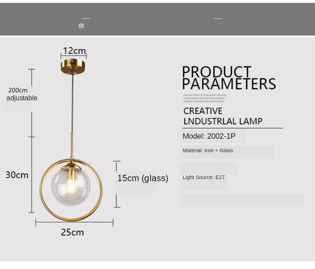 Modern Glass Ball Pendant Lighting Fixture Golden Ring Kitchen Dining Room Bedside Hanging Lamps Luminaire Suspension Lights